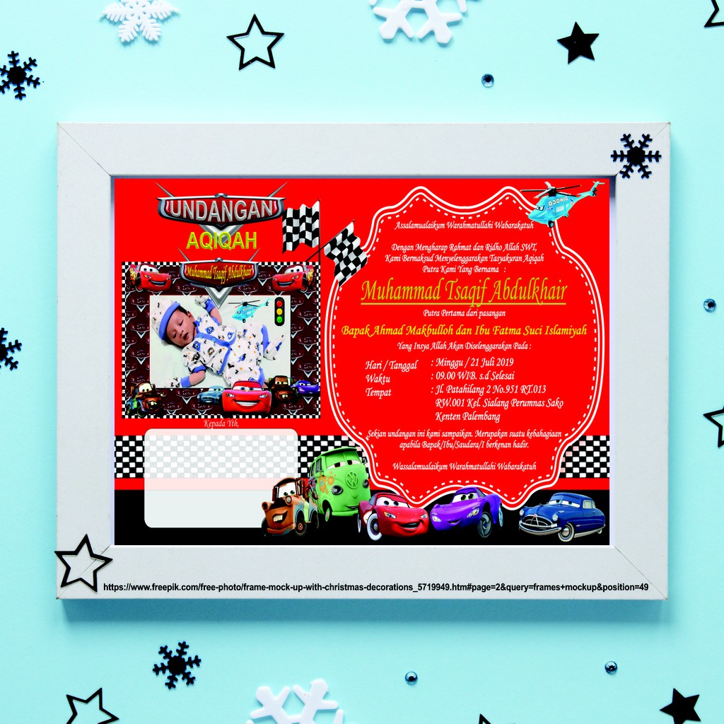 Simpel atau desain yang ramai? Frame undangan ini adalah frame undangan yang mampu memberikan inspirasi bagi kita dalam membuat undangan yang unik dan menarik. Contoh acara yang memerlukan undangan antara lain; Disisini kami juga membahas hukum aqiqah mengenai hewan. Kartu / undangan aqiqah bisa digunakan sebagai undangan digital dan juga untuk dicetak *harga hanya designya saja, tidak termasuk cetak, file dikirim via email/link download *dikirim hasil akhir.
